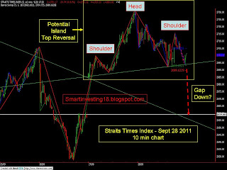 A picture is worth a thousand words! What could happen to DOW tonight to trigger a potential gap down tomorrow in Straits Times Index? Or will it trigger a potential inverse Head & Shoulder Pattern in the Straits Times, ie continued rally? Stay tuned for Stock Market Forecast - October 2011. Will there be a major crash or major rally?